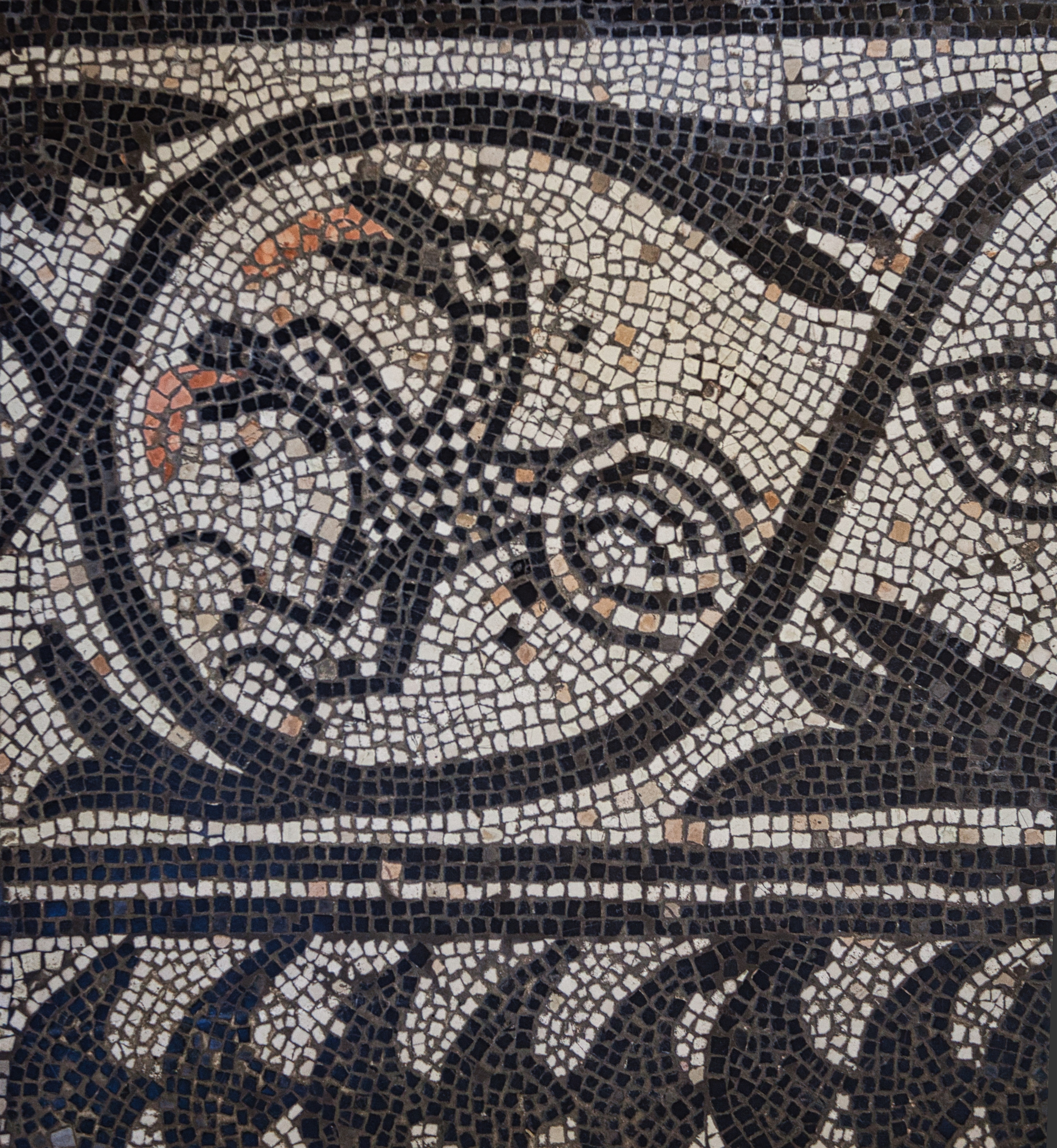 Sotto il mausoleo, i restauri di fine Ottocento hanno portato alla luce uno dei tre lacerti di un rivestimento musivo del X-XI secolo, che in origine doveva ricoprire l’intera superficie della chiesa, come un prezioso tappeto.