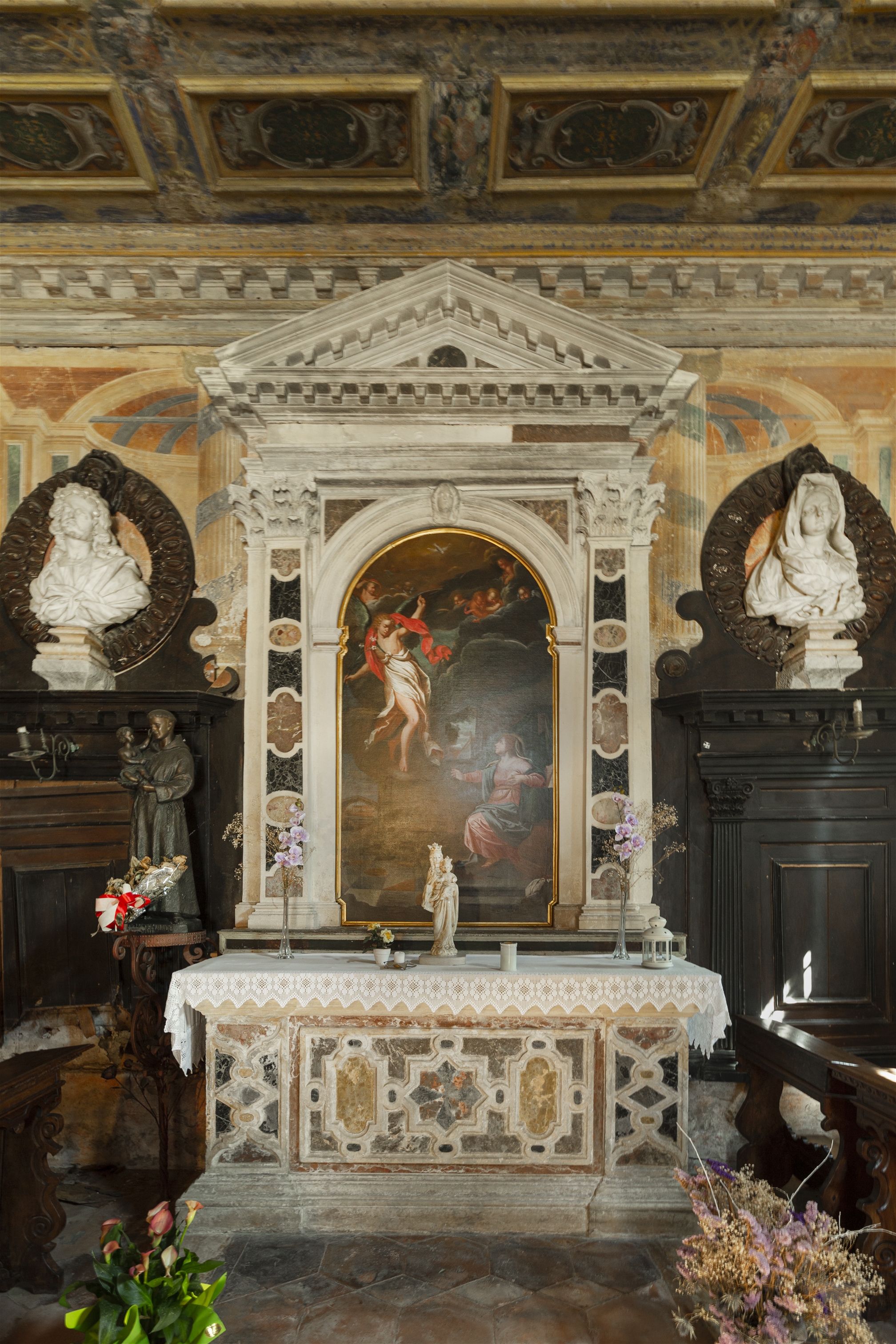 La pala dall’altare riporta un’immagine olio su tela di Maria Annunciata all’Angelo, che si rivela di discreta fattura nelle sue contenute dimensioni.