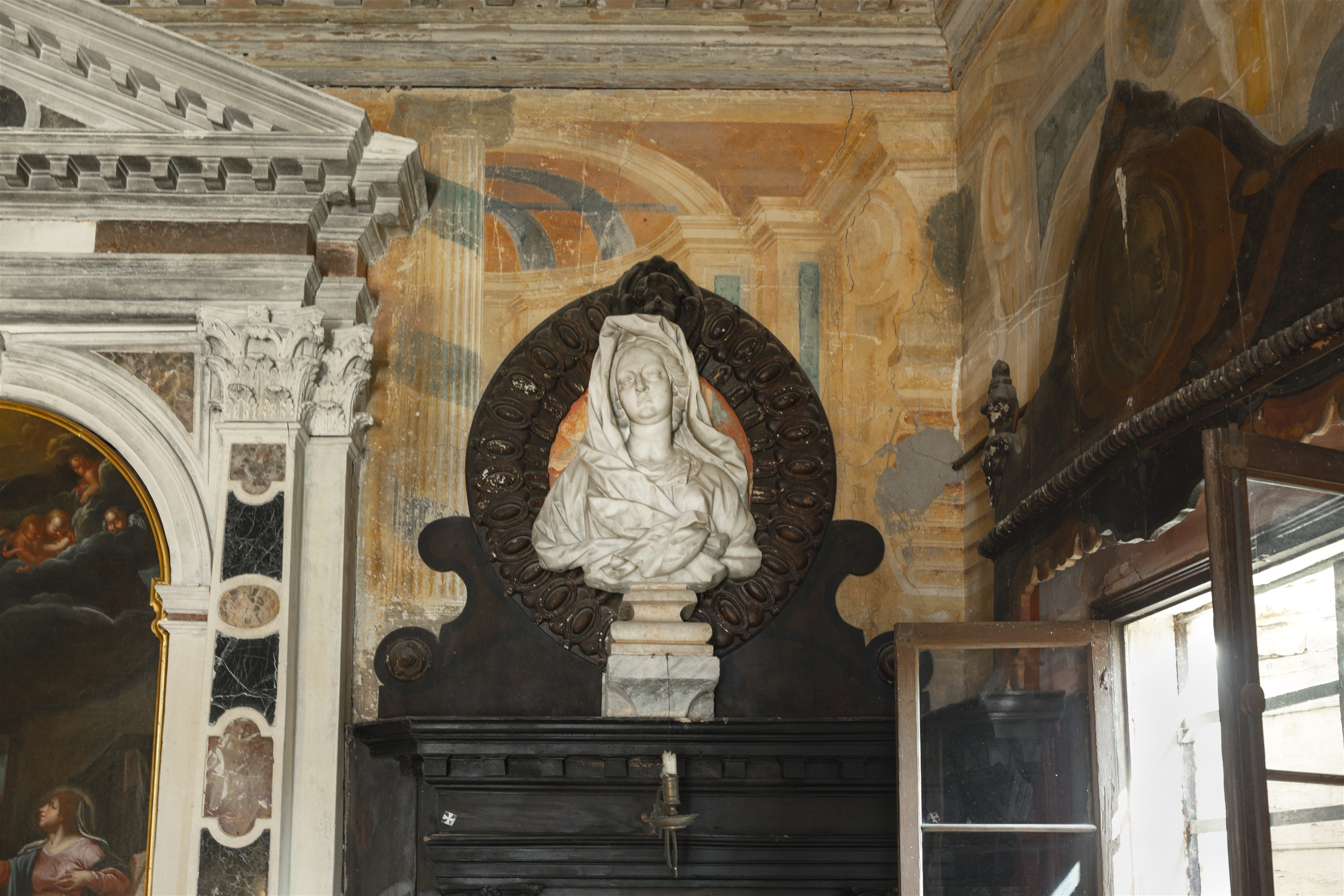 Ai lati dell’altare, poggiano su alcune mensole due busti in marmo bianco, forse di Carrara: il Cristo (Ecce Homo) a sinistra e la Madonna (Vergine Addolorata) a destra. Le opere mostrano elementi pienamente barocchi e, in particolare, rimandano allo stile di Giusto Le Court. Anzi, vista l’accuratezza e la precisione con le quali sono stati lavorati, si potrebbe pensare che siano proprio opera del maestro, il quale forse all’epoca era già in contatto con la famiglia Pasqualigo. Per quanto riguarda la datazione, è presumibile che si tratti della fine del Seicento.